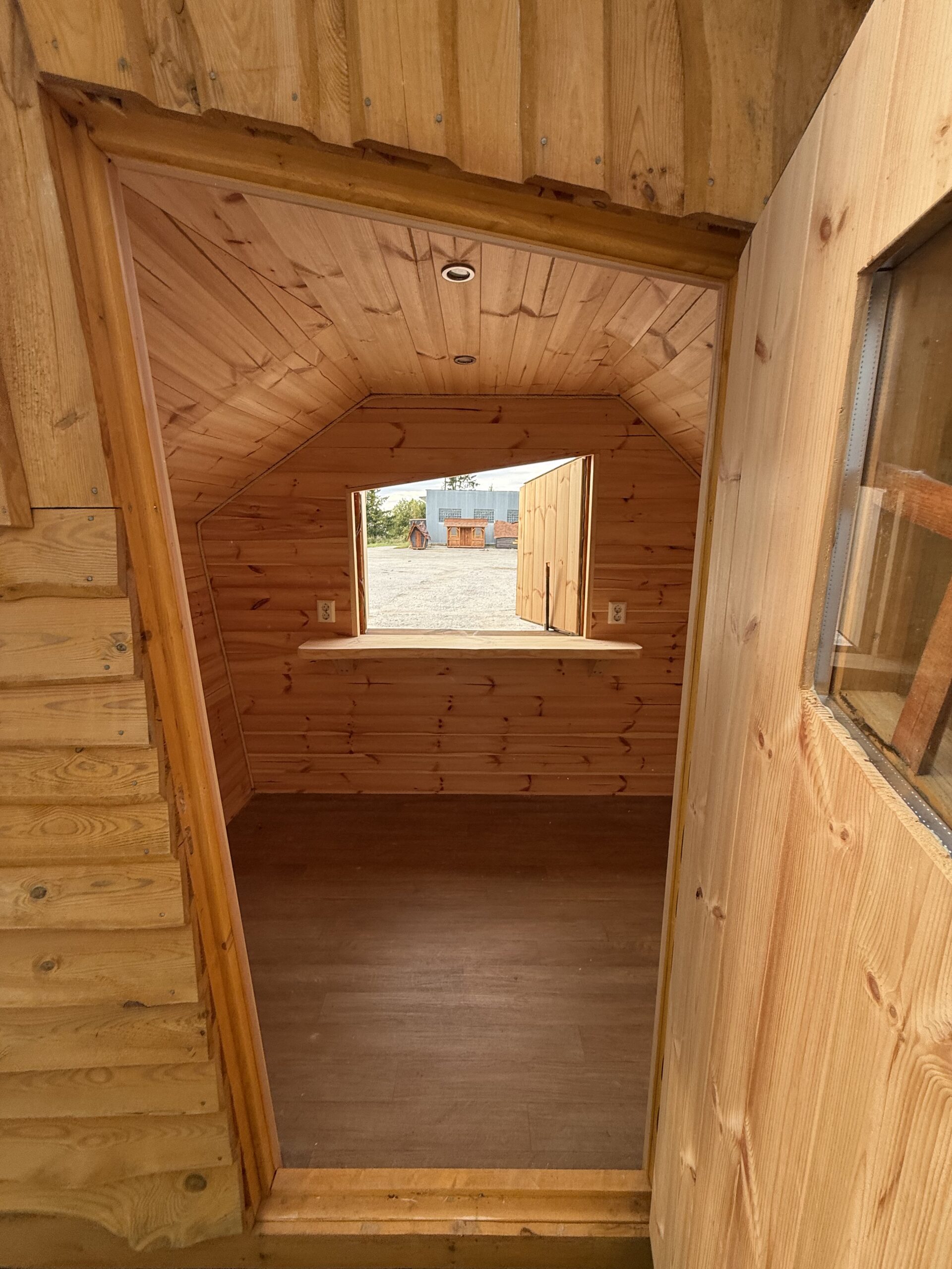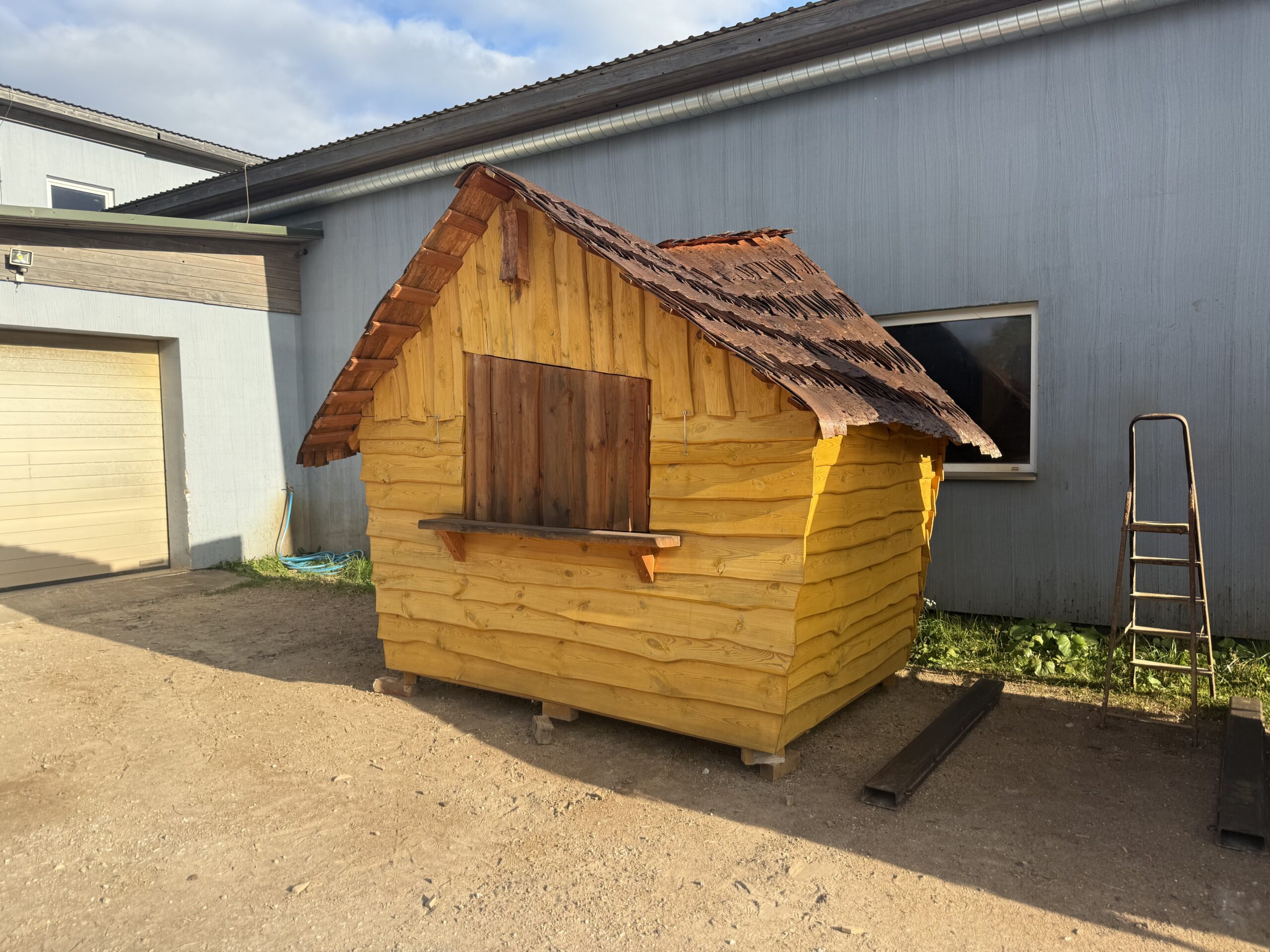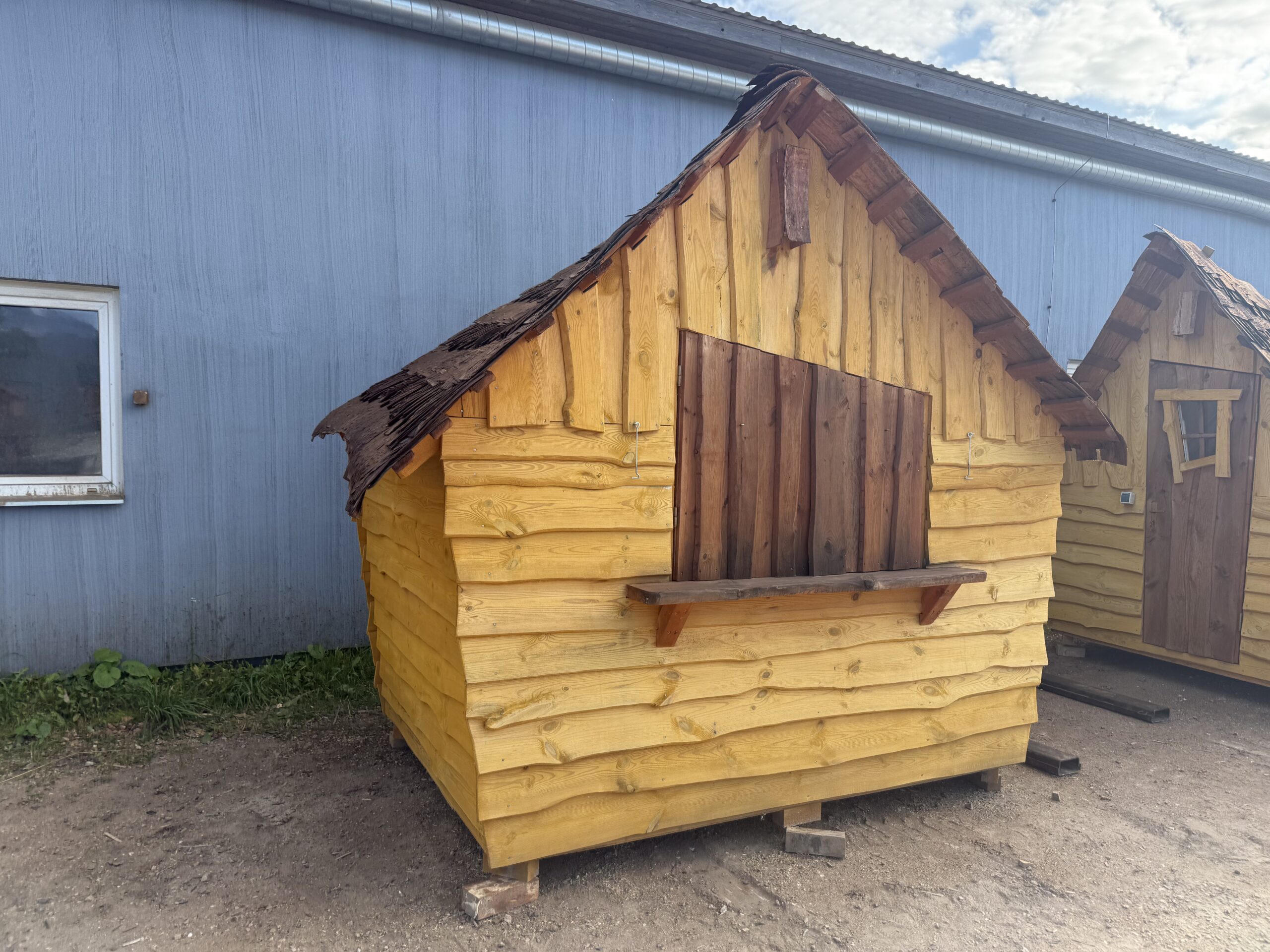 Nõiamaja väljanägemisega soojustatud müügikiosk. Sisemõõdud 2,32 x 1,62 x 1,98 m. Välismõõdud ca 3,35 x 2,35 x 2,95 m.